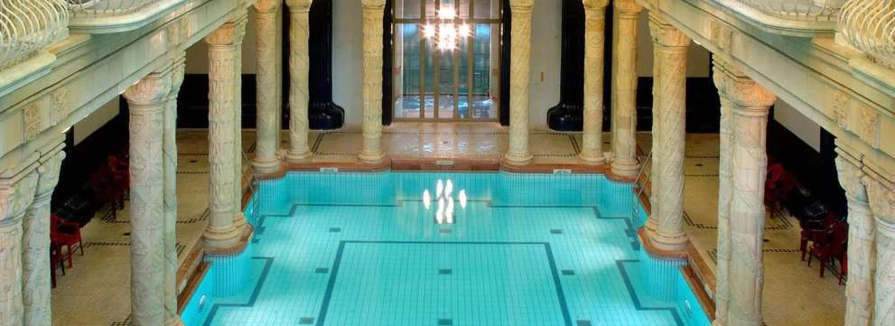 Upon entering the Gellért Thermal Baths indoor swimming pool area you will experience a journey into past times. The pool environment becomes unparalleled because of the Art Deco architecture which combines intricate tilework and stained-glass windows and grand columns.